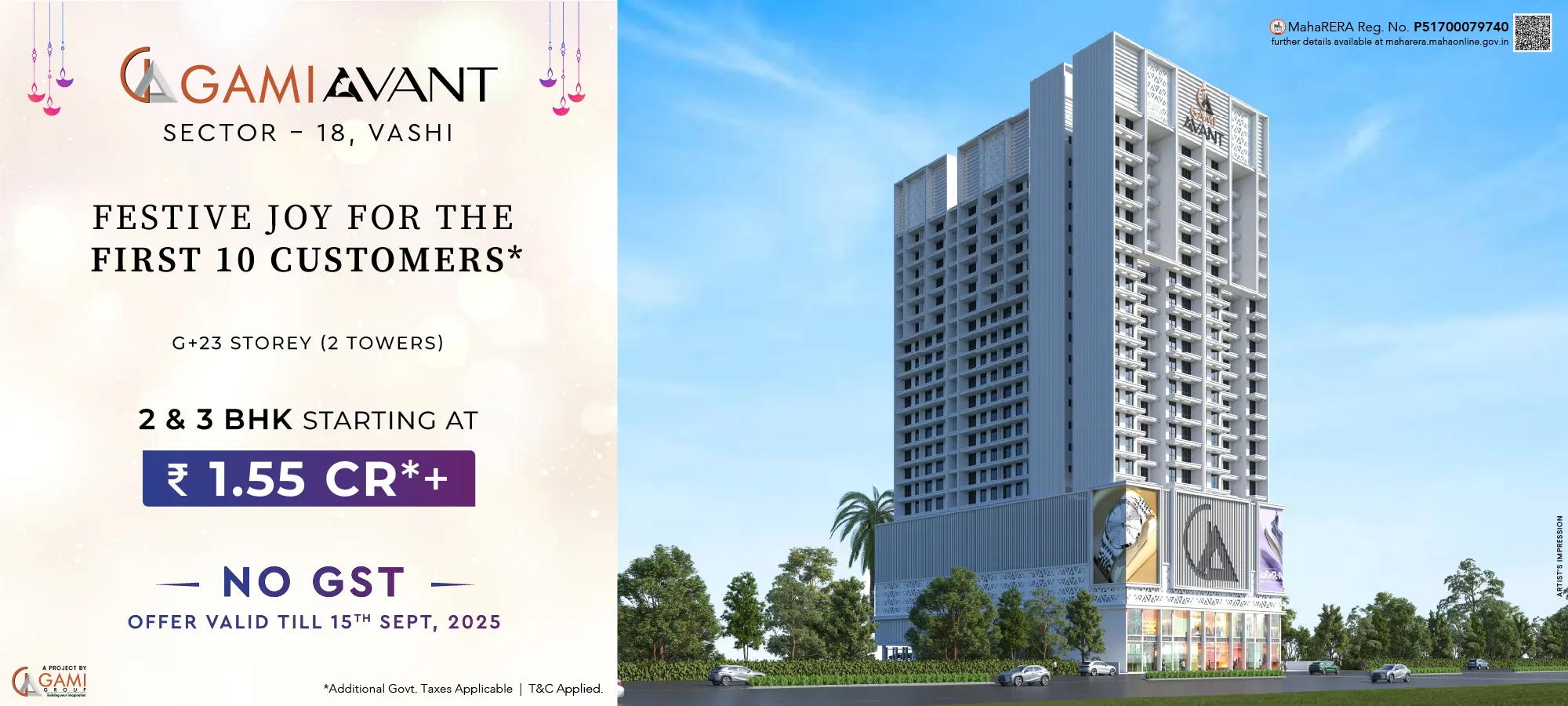 Gami Group expressly disclaims all warranties of any kind whether express or implied including the warranties of merchantability and fitness for a particular purpose. Gami Group reserves the right, without any obligation whatsoever; to review, correct, remove or modify all or any content submitted herein. All plans, drawings, amenities, features, specifications other information etc., mentioned herein are indicative and/or suggestive of the kind of development proposed to be undertaken and are subject to the approval of the respective competent authority. All plans, renders and models displayed herein are artist's perceptions and must not be considered as actual buildings, flats, apartments, etc.